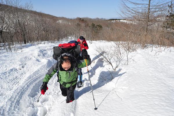 등산길을 제대로 찾아 러쎌을 만들때는 무릎 위까지 눈이 올라 왔으나