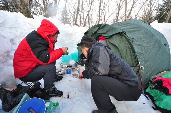 강풍에 눈삽2개로 1m정도 눈을 퍼내고 3인 텐트와 1인용 비빅색(심양섭 거)을